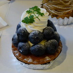 「アーモンド風味のタルト。甘酸っぱいブルーベリーをタルトの上いっぱいに飾りました。」