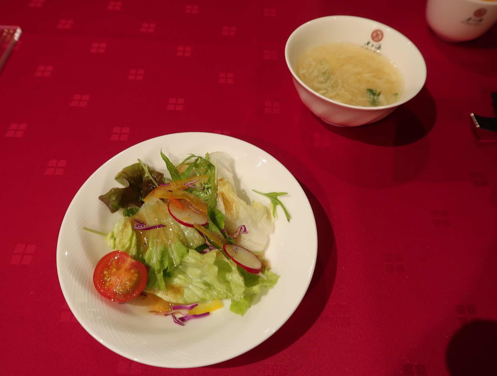 まずはサラダとスープが